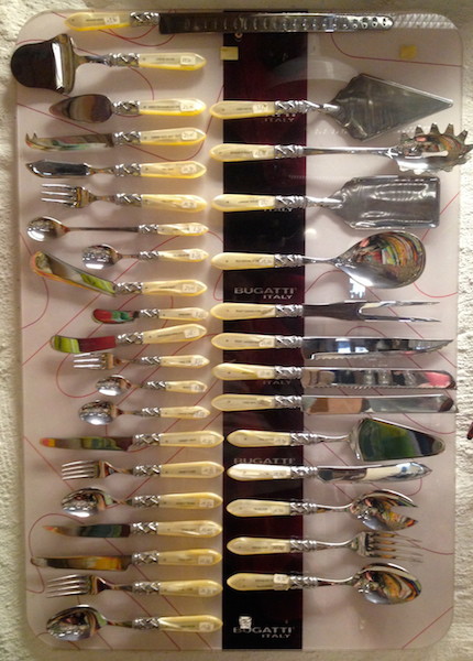 Die edle Bestecktafel von Bugatti aus Italien können Sie bei uns in Ihrer Wunschfarbe erwerben.